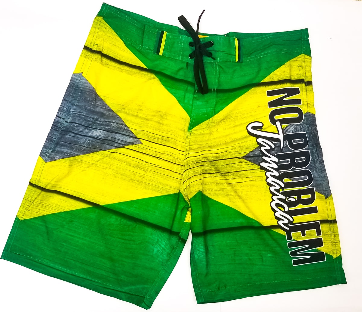 Show your Jamaican pride to the world! These vibrant board shorts feature the iconic Jamaican flag design with a cool "No Problem Jamaica" graphic. Perfect for beach days, watersports, or just embracing the laid-back island lifestyle. Experience comfort and style with a true taste of Jamaica.